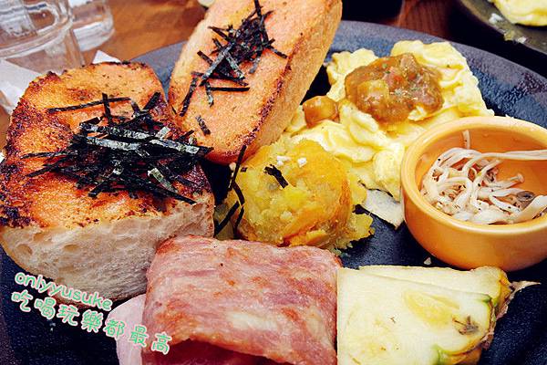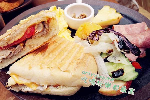 ♡擺盤裡還有火腿跟培根,口味上都很溫和,不會太鹹,重點是旁邊還有水果真的很健康耶!而且它跟以往我去的早午餐店不太一樣,沒有看到熱量高到破表的炸食以及馬鈴薯泥,整盤不只是美味,而且給人很健康的感覺,一天最重要的一餐感覺該吃的都吃到了