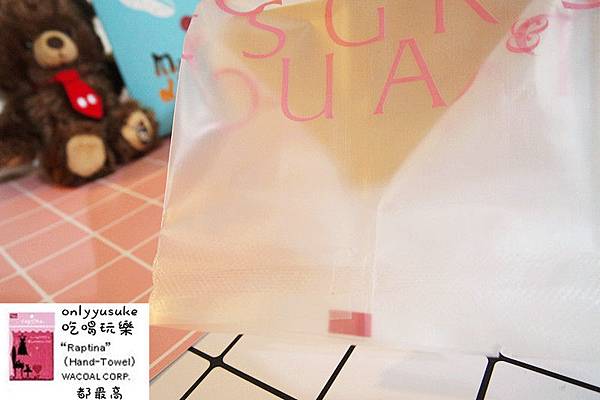 ♡蛋糕捲的外袋也美美的耶!是透明粉色糖村品牌的英文印字設計